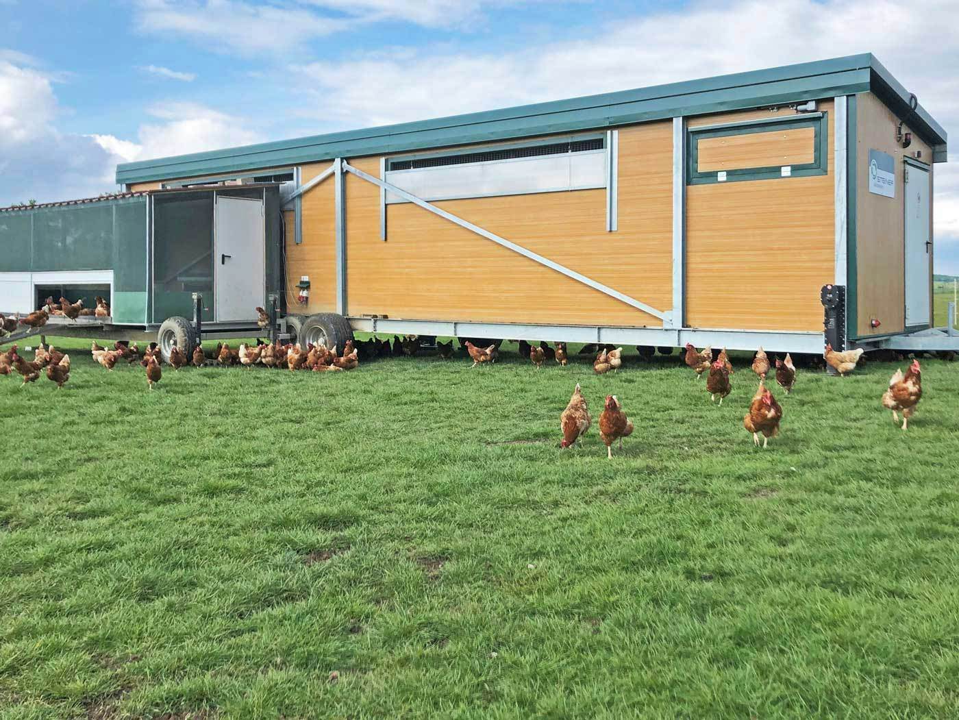 The family sells their eggs to a regular private customer base, such as restaurants, hotels and Maisons Relais. Customers can also collect them through an 24/7 accessible refrigerator on the farm itself (see photo). The other part of the production is delivered to the Bio-Ovo cooperative. After all, this involves almost 4000 eggs per week. Here they are being checked, sorted, packed and marketed under the brand name. This requires strict rules according to the guidelines of organic farming, such as 100% organic feeding, at least 10% of the feed consisting of local grains, various place-per-animal regulations and a winter garden. Since the animals can access a lot of grassland, new grass needs to be planted in a short amount of time. The special feature of the farm is the new mobile henhouse, which allows the animals to be taken to different grazing areas, so that they can always enjoy the necessary open air areas. Both the fixed and the mobile henhouse each accommodate around 500 animals and are equipped with a winter garden.