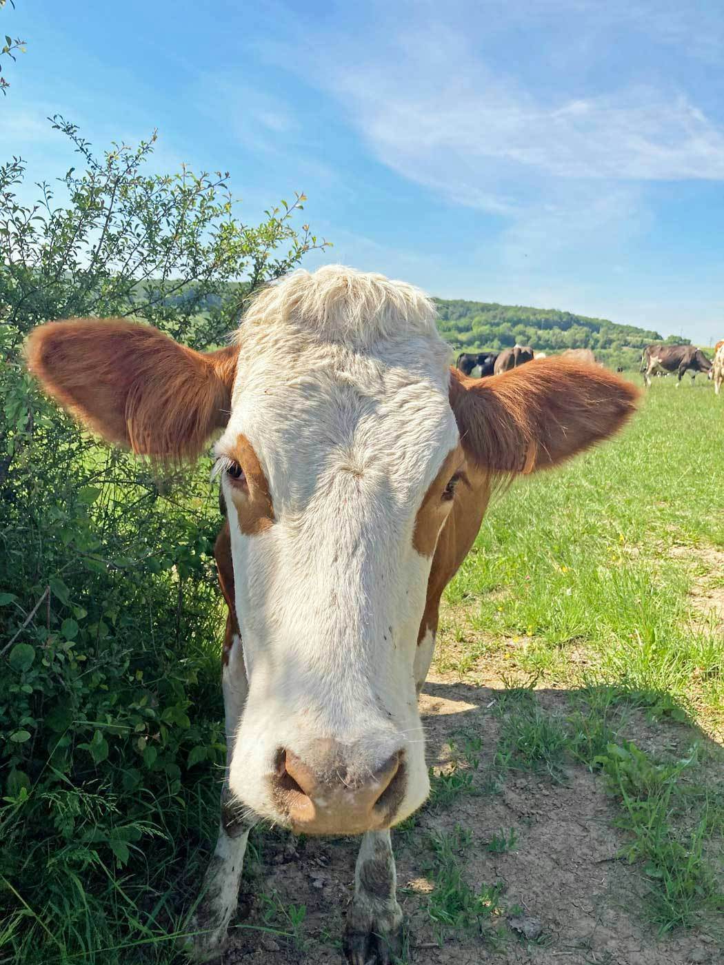 Le fermier produit du lait biologique frais avec ses 60 vaches laitières (principalement Fleckvieh). Il cultive 70 hectares de pâturages et 70 hectares de terres arables où sont cultivés du blé panifiable, du maïs, des pois et de la luzerne. Tout ce qui est produit dans la ferme sert à nourrir les animaux. Les autres habitants de la ferme sont un taureau reproducteur, quelques poulets et des canards.